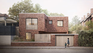The interiors feature double-height spaces, integrated seating and cupboards. Concealed gutters are integrated within the roof to allow for a clean and contemporary form. To create the tactility of arts and crafts the proposed external finish is both a smooth and rough render. This allows the scale of the facade to be broken and adds a level of sophistication to the materiality.