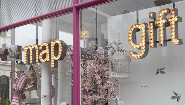 The access to the shop – which had been a particular frustration for Map’s owners over the years – was greatly improved, and customers previously unable to visit the shop due to mobility issues were thrilled with the wider entrance: “I am delighted to be able to finally have a good look around”. The curved glass window also provided a striking podium for the shop’s brilliant window displays, enhanced by the new circus-style lettered-lighting.