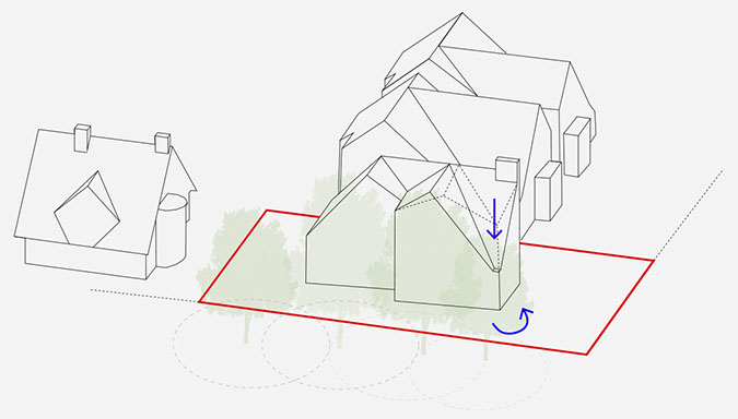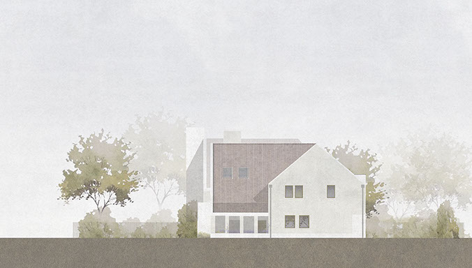 Arts and Crafts characteristics seen along the existing streetscape include low and overhanging eaves, catslide roofs, dormer windows and oversized chimneys, contributing to the avenue’s lively roofscape. Many houses feature multiple gables that face both ahead and to the side, forming asymmetric building shapes redolent of traditional rural British architecture. The design proposal seeks to continue the architectural language found along West Heath Avenue. The form of the proposal has also been influenced by the relationship with neighbouring buildings.