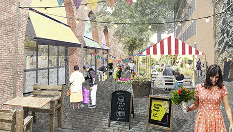 By keeping light industrial uses towards the centre of the site, there is the opportunity to use existing retail units on Rye Lane as a shop-front for goods made on the site. Enhancements to heritage building elevations along the high street would also serve to promote and strengthen local businesses.