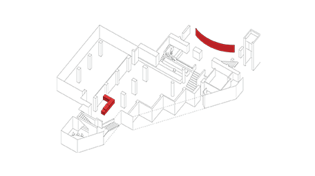 Working alongside the theatre’s Artistic Director Vicky Featherstone, we surveyed use of the undercroft, summarised by the pedestrian-flow diagram (far left). With this complete, a sensitive appraisal of the Grade II-listed building began. This helped the team understand the historic fabric’s construction and materiality, which informed later design decisions.
